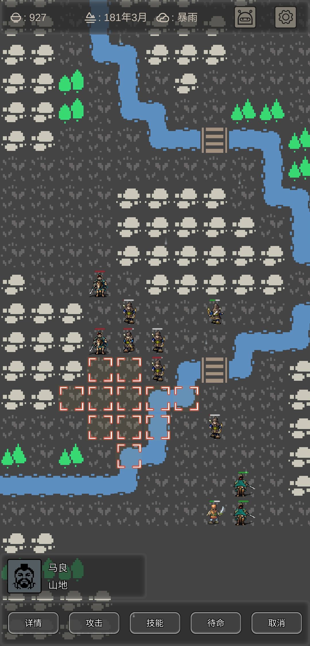 还有令人头疼的点。骑兵在山地的行动速度实在太慢,而地图却设计成大部分为山地。(我不知道是否其他战斗画面也有那么多山地)