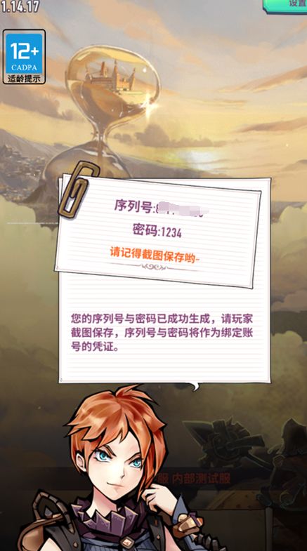 温馨提示:序列号作为【安卓官服】和【IOS服】的账号角色唯一识别码,请注意妥善保管好序列号,因个人丢失或者与他人共享序列号等行为造成角色数据丢失的损失,需由账号保管者承担。