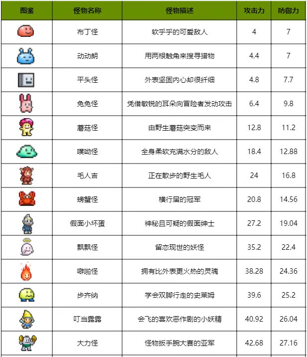 【怪物图鉴】怪物描述、攻击力、防御力一览