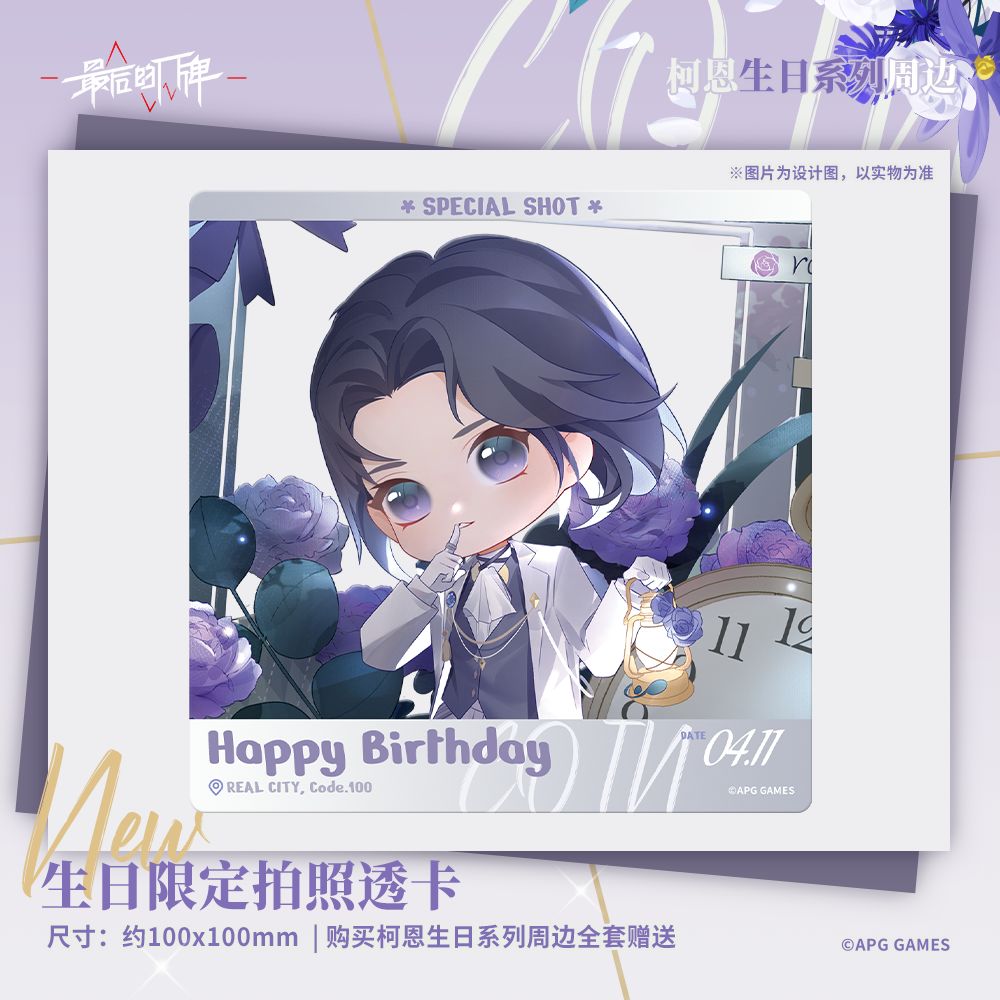 ✦预售期间,购买柯恩生日系列全套周边(共三款),赠送生日限定拍照透卡一张,可叠加,数量不限。