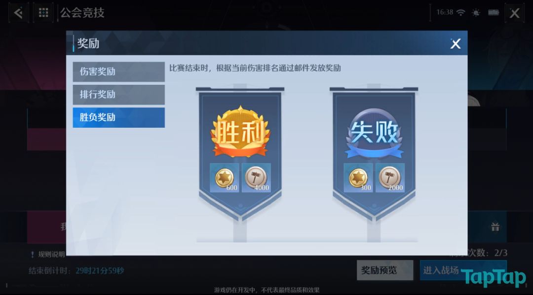 3、胜负奖励:活动结束后,分别给两个公会发放胜利以及失败方的奖励。