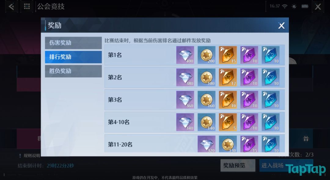 2、排名奖励:根据最终结算的伤害排行发放不同的排行奖励。