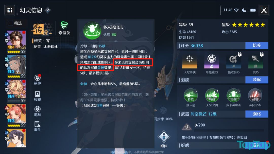 影舞之志:幻灵出场时,使附近友方单位造成弱点识破能力提升20%,造成弱点识破伤害提升10%,持续12秒。(触发之后的一段时间内,全队会因为影舞带来的额外识破效果对目标造成更多的伤害)