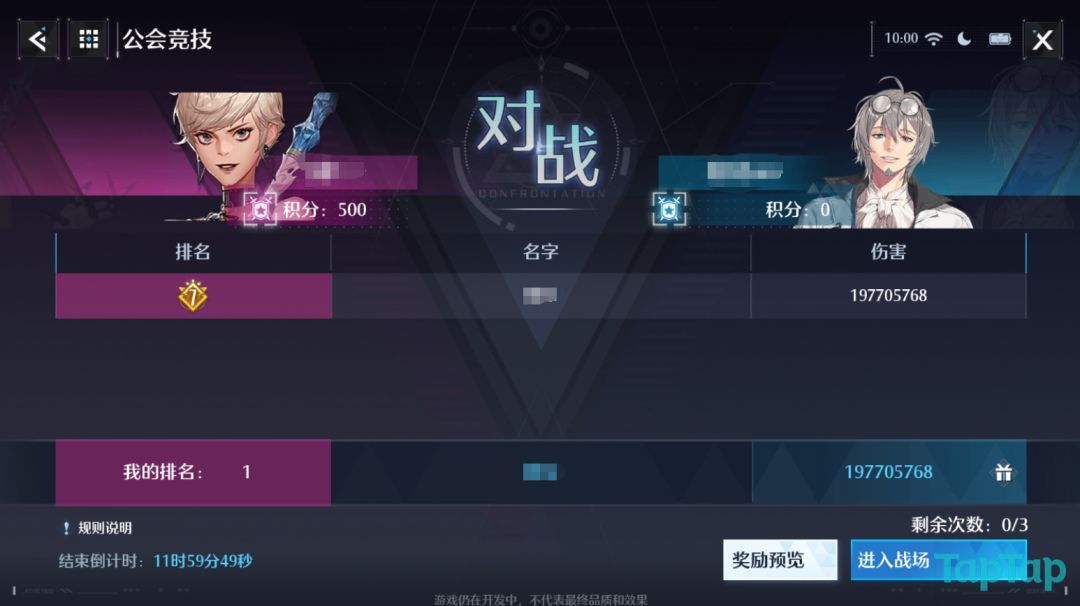 2、对战双方公会伤害量排名前50的玩家会进入排行榜单,根据排行给公会增加不同的积分。(未进入榜单的玩家只给公会提供少量积分)