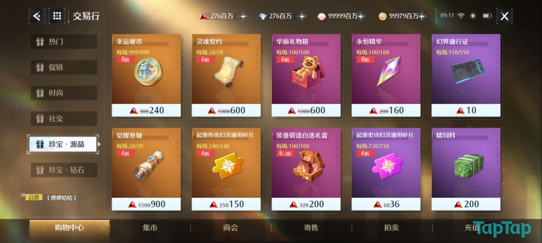 目前能够大量获取幸运硬币最直观的方式就是在交易行的珍宝·源晶处购买了。每周限定玩家们能够购买999个幸运硬币,每个幸运硬币的售价是240源晶。如果你是想要大量抽取传说幻灵的玩家,那么在这里批量购买幸运硬币是你最好的选择。
