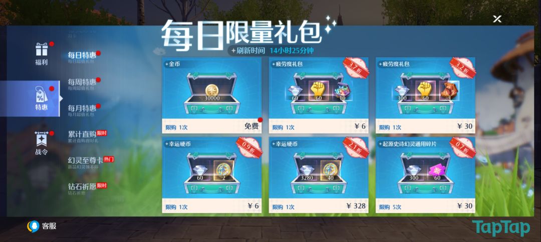 通过福利页面的每日限量礼包里,玩家们可以选择购买3280宝石和40个幸运硬币。这也是除了交易行购买之外的一大付费获取大量幸运硬币的方式了。想要多抽拿到大量传说幻灵的玩家们请不要错过,这是目前性价比最高的幸运硬币购买方式。