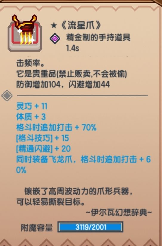 3.格斗时追加打击+70%/同时装备飞龙爪,格斗时追加打击+60%