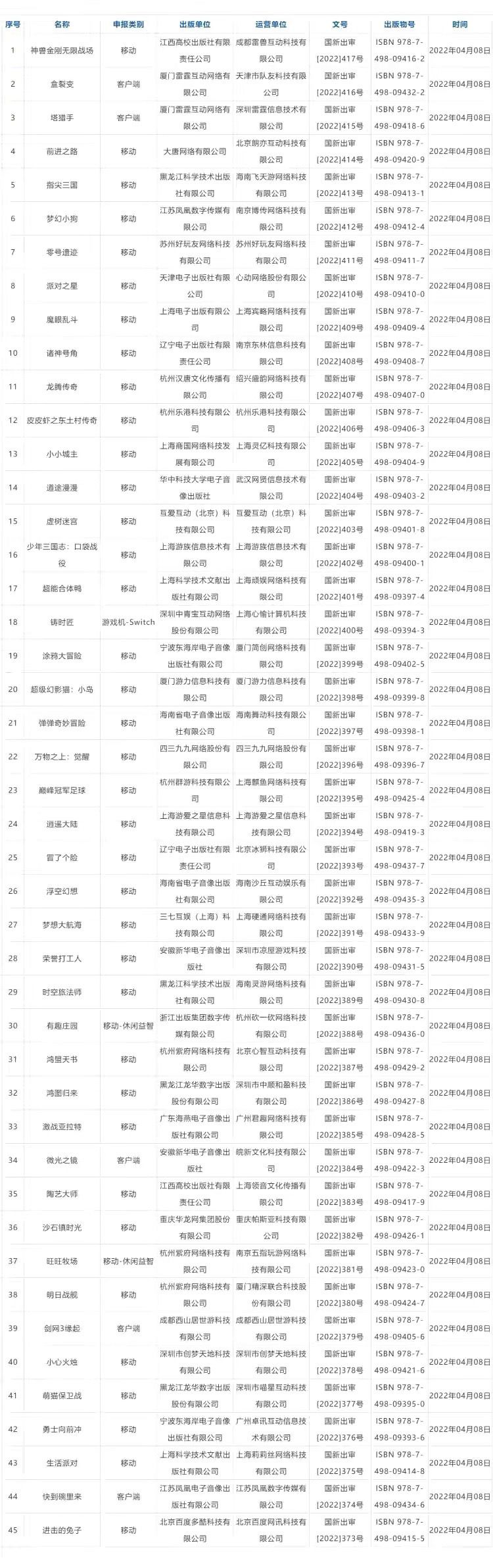 2022年首批游戏版号公布,没有农场