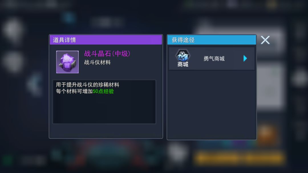 战斗仪的等级提升的材料是战斗晶石,小伙伴们可以通过自由对战或者绝地求生等战斗日常任务获得。也可以通过游戏中的商场购买获得。