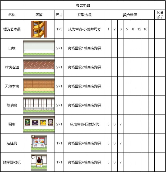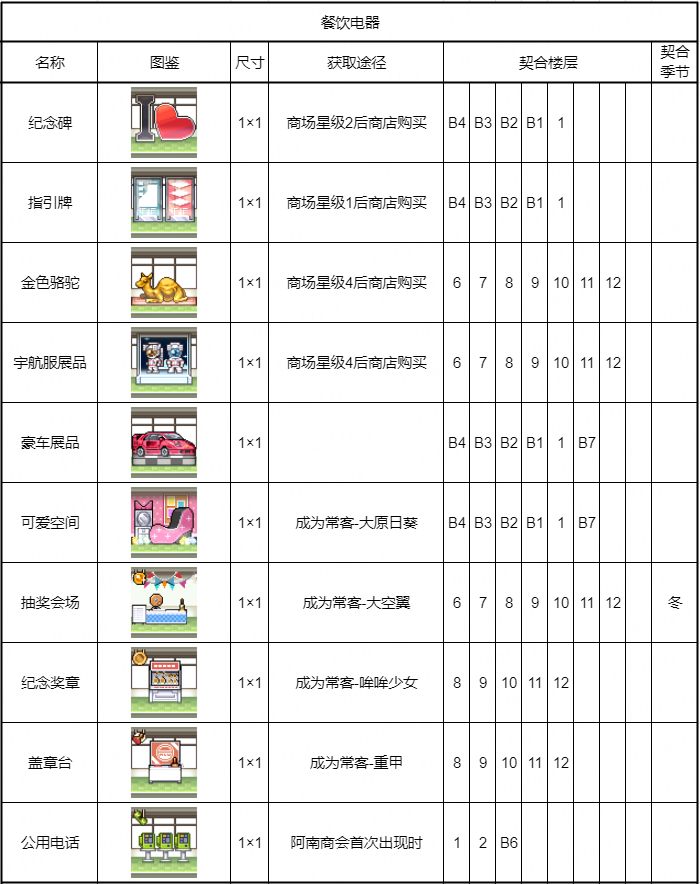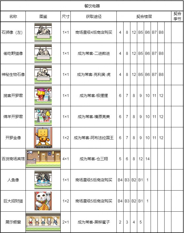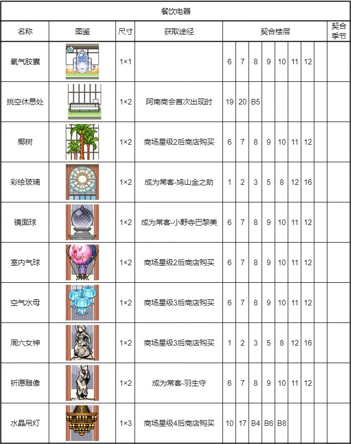 【公共设施图鉴】获取途径、契合楼层、契合季节一览