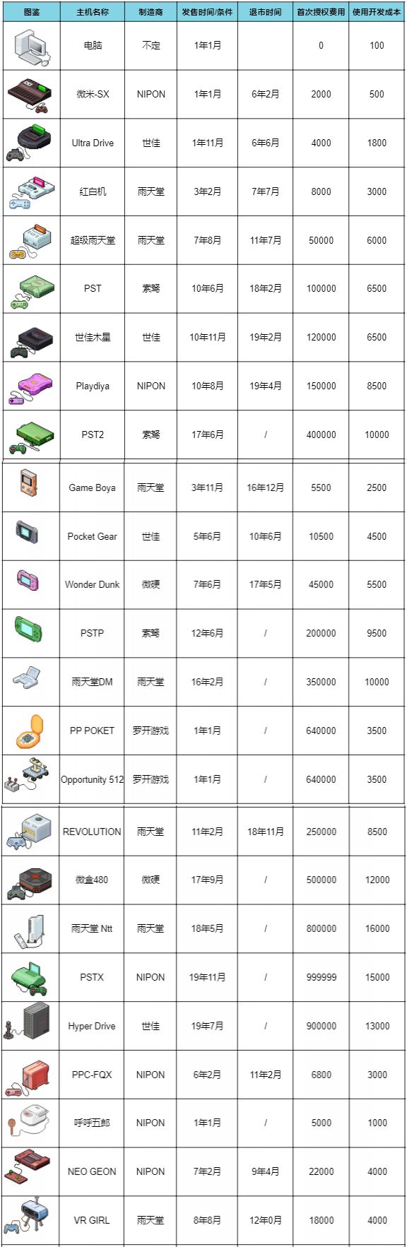 【主机图鉴】制造商、发售条件、退市时间、首次授权费用、使用开发成本一览