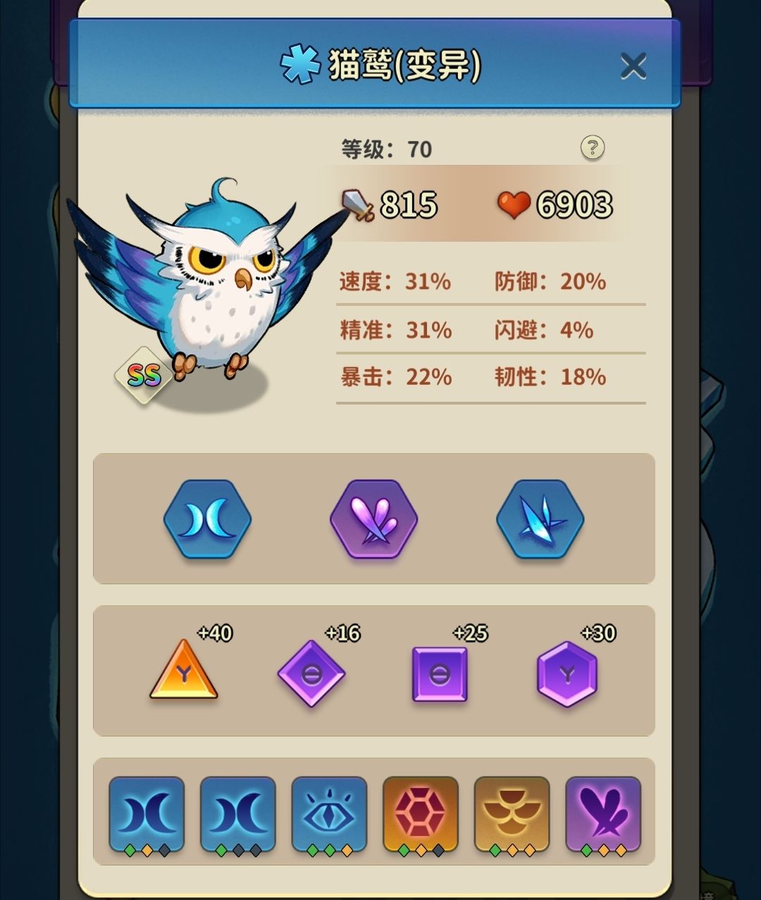 土龙第一天上线我抽了个彩色,放猫鹫队里就业了,高速度有精准谁会不爱?冰灵染色奶,偶尔补一下拉,防推可以把土龙放第一排,猫鹫刮刮刮就行,没啥好说的,别在混沌之境遇到维修工就好。