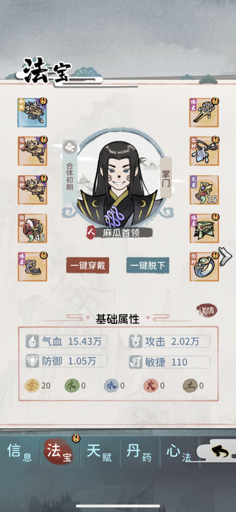 大师兄换成3把合体枪最好 我是一个化神锤 一土枪 一水枪 首饰用炼虚的拉满 基础功法御宝秘笈全换成合体期的 蓝色或者以上就行 直接站中间捅就行