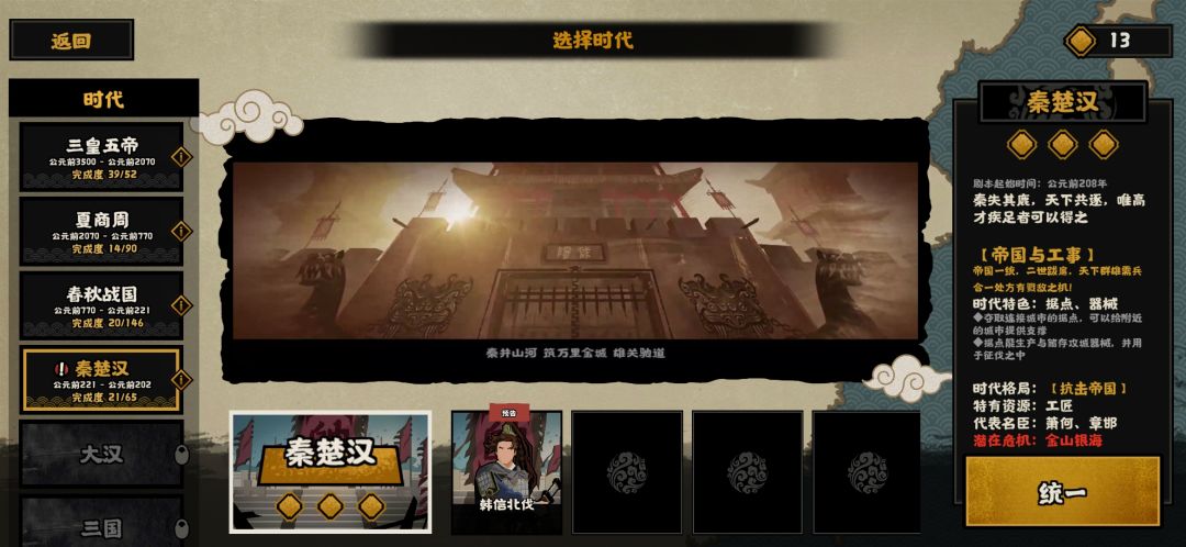 这种模式粮草是最重要的,军心庙算可有可无,主要是为了那几个有这两方面要求的政策,如果你想玩的舒服一点,花十几二十分钟sl云存档,先上传,然后去探索,或者刷新政策和兵,刷到满意的就点了,没满意的就下载下来重新刷,循环一波,可以达成完美开局,当然,也不是有资源就够了,也需要一点微操,比如说逐鹿剧本,想打过蚩尤就要用步兵的兵击拉扯,长平之战想要强攻过关就得六万打十万,说起来有点多了,如果有人感兴趣的话下次再做一下战役的攻略