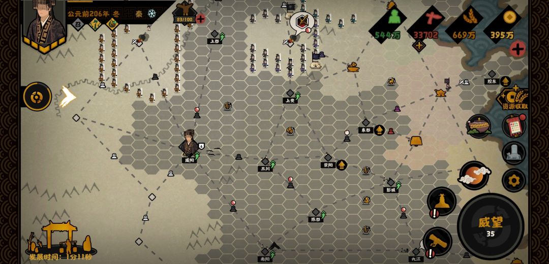 秦楚汉刷碎片,感觉要在206年要做完的事有,开局臣服燕国,点出2级兵(这是tap大佬教的)。接下来不应该奇袭彭城,应该直接秒张楚,再灭魏直接拿下东郡,这样最稳,接下来找那几个粮草据点拿下!