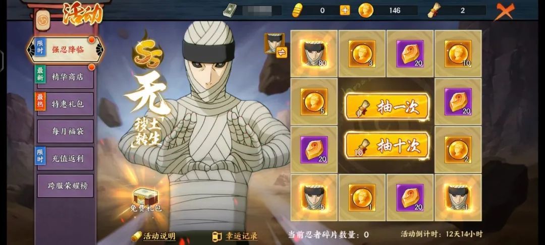 ⭐活动说明:新忍者无[秽土转生]登场,活动期间通过参与强忍降临活动可以获取。