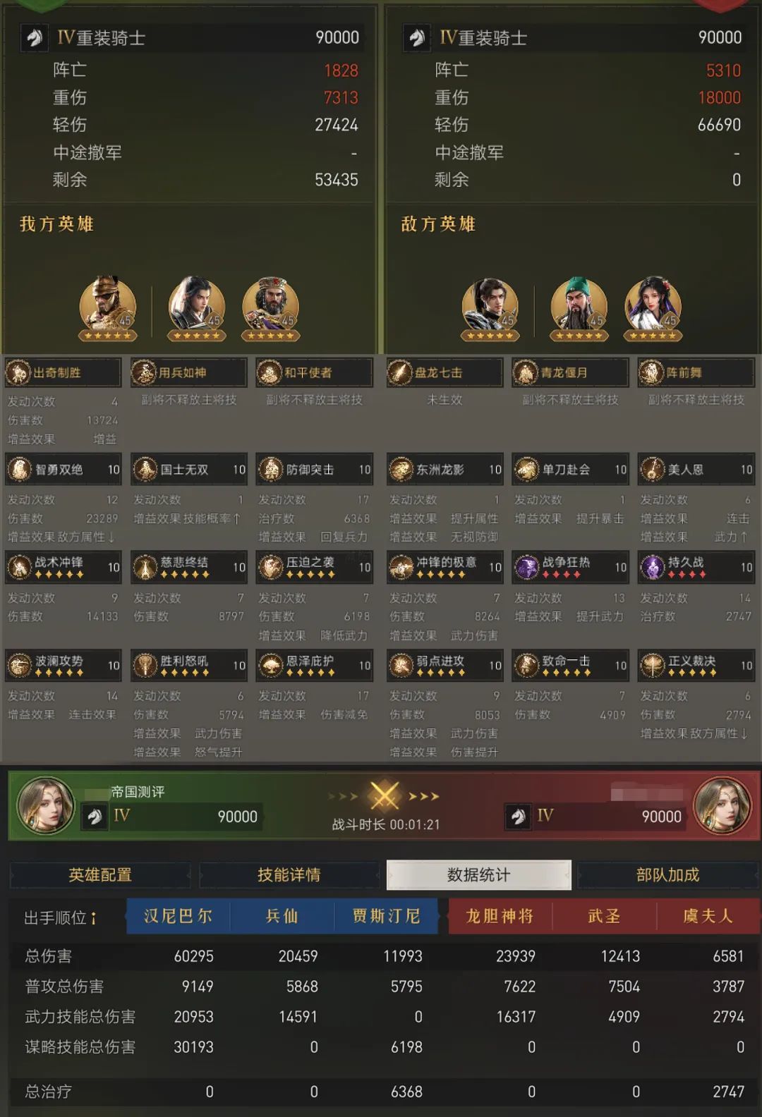队伍配置:90000兵力,技能等级10级,英雄满天赋,无科技加成。