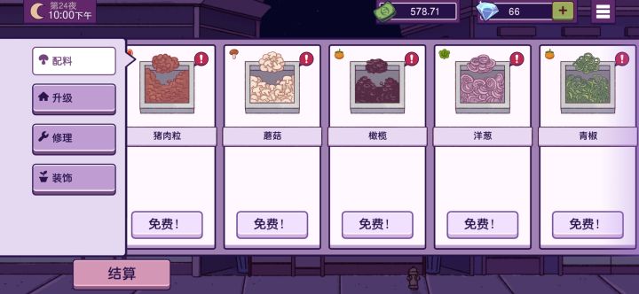 刚开始玩什么都不要买 他会给你免费的辣肠和一个女人送来的茄子种子(需要浇水养它)