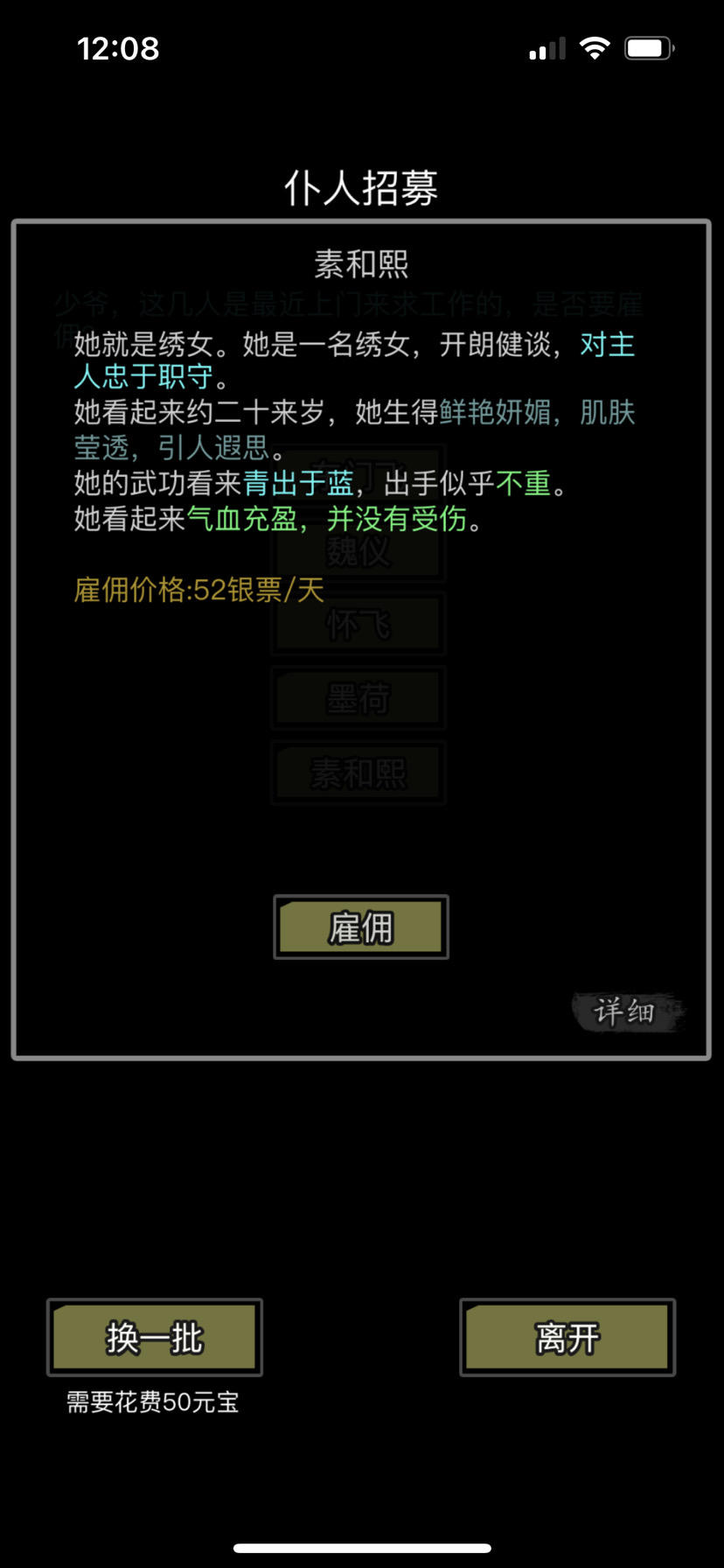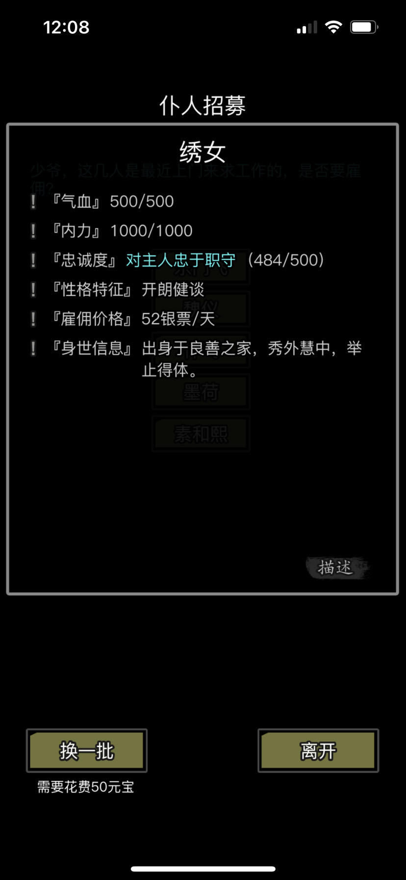 绣女好像挺好的了,铁匠这个性格拿不拿呀,我肝一点,不怕钱不够养不起!!!有阳口和炼器房了
