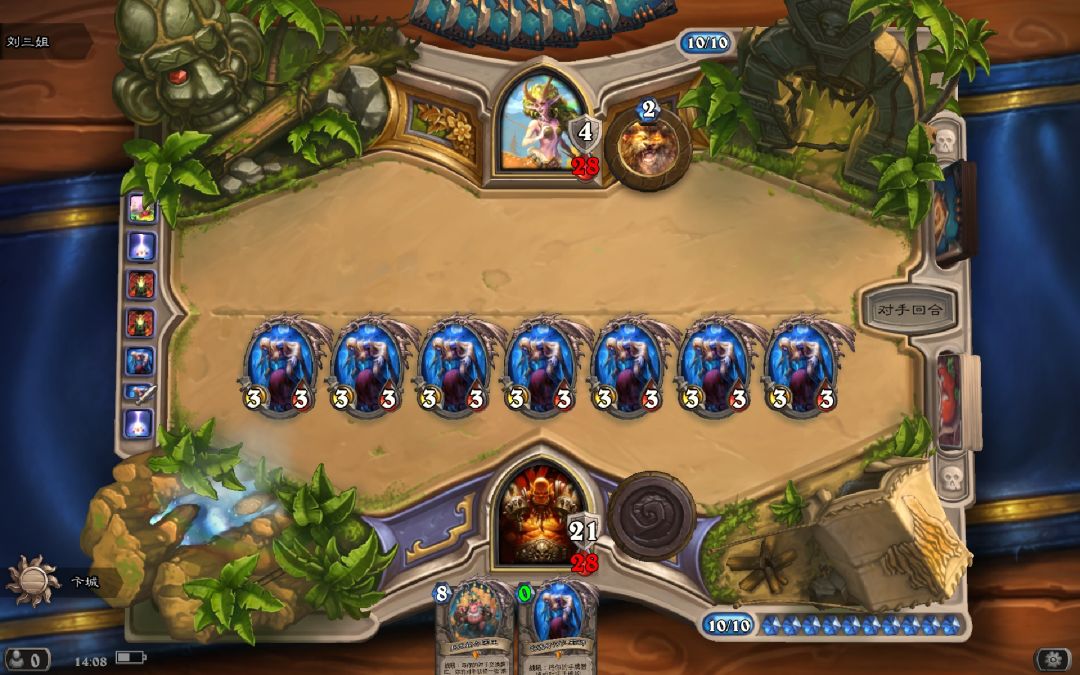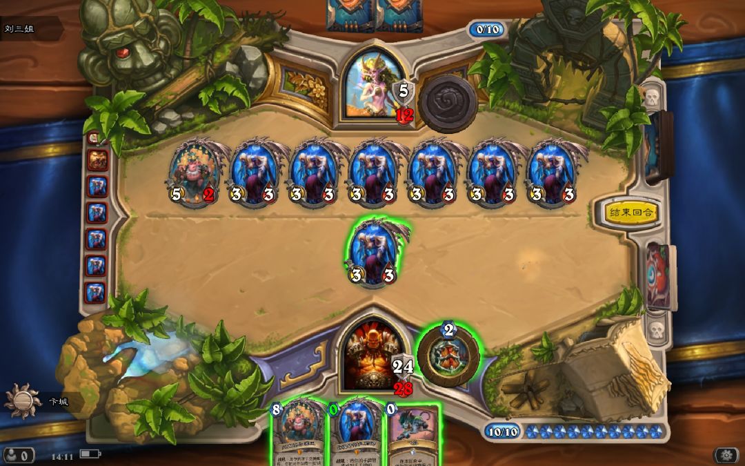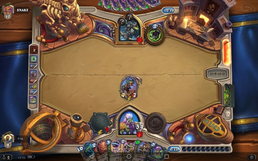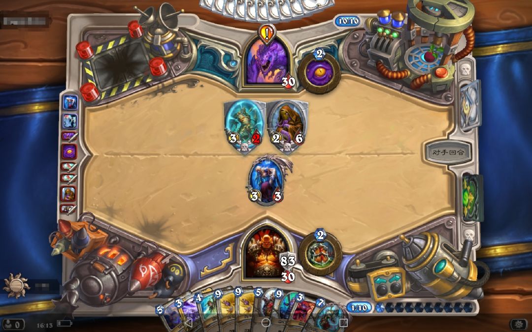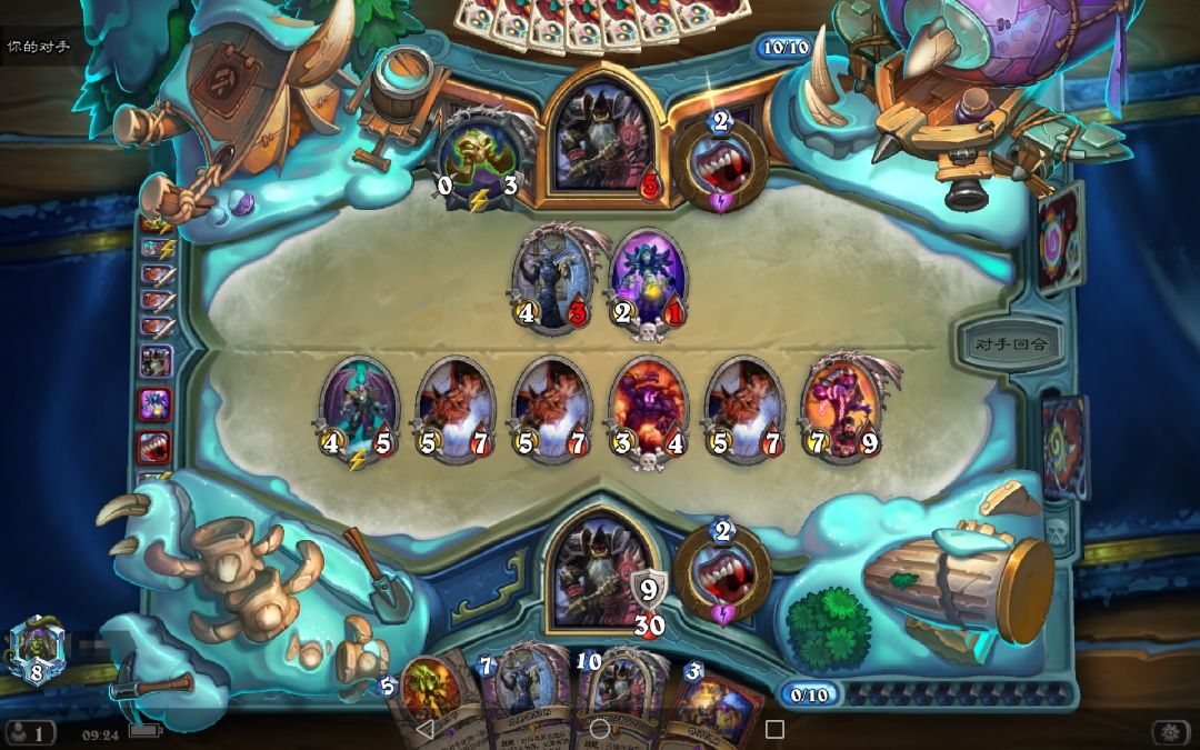 在对战德鲁伊的时候,733的作用就显现出来了,但是德鲁伊的类型难以判断,需要运气和你的理解程度,我没有犹豫判断对面是什么卡组,很果断地下了733,对面的斩杀还没有成型,然后对面没有立即下怪和我鱼死网破,这就给了我一个先手的机会,我果断拍怪,对面组件不全,立马慌了,也开始拍怪,而他下怪的时候,就注定了他失败的结局。
