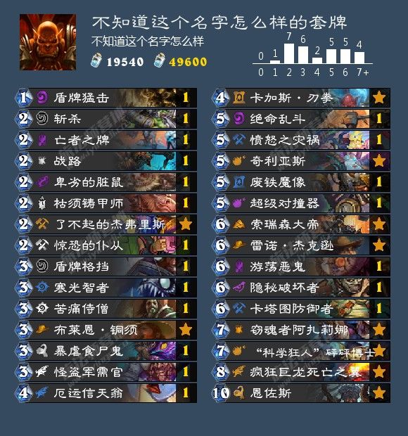 爆牌鱼除了配合铜须爆牌,还是补充手牌为数不多的方式,脏鼠是破坏OTK或者破坏对手体系的一张关键牌(如果对方是大哥牧,大哥萨,建议就别上了),导演的话..........导演救我! 窃魂者之所以可以带,可以参考以上的两个卡组,没有什么花哨的体系和优势,但没有优势和体系恰恰就是最大的优势,手牌一手解卡可要可不要(我认为窃魂者的优先级要高于导演,如果导演和窃魂者都在手,一般会放弃导演),卡组更加灵活多变,每局都可以是完全不一样的打法,没有固定思路,卡组可以根据环境更变而且不会影响体系。这就是无限战对于我来说的魅力。它突出了炉石传说的精髓-------随机。