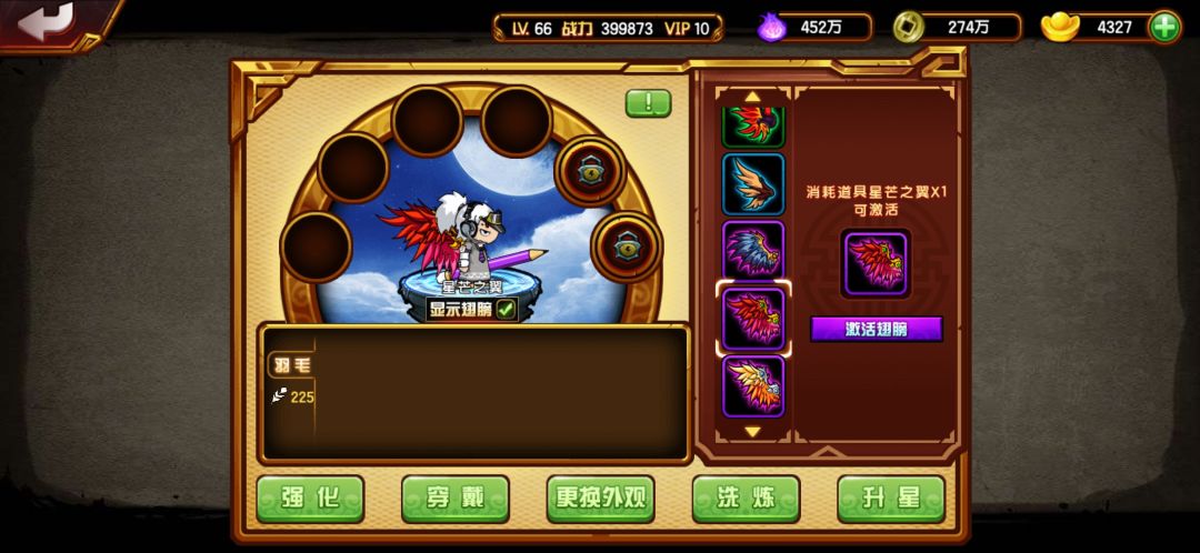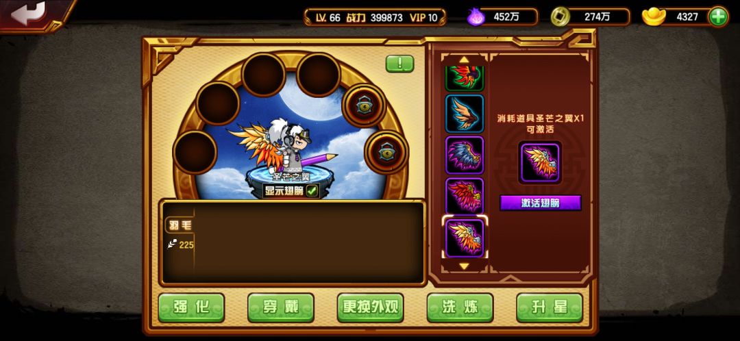 有条件的土豪们可以氪圣芒之翼/星芒之翼,当然平民小伙伴们可以考虑活动的四象之翼/天象之翼