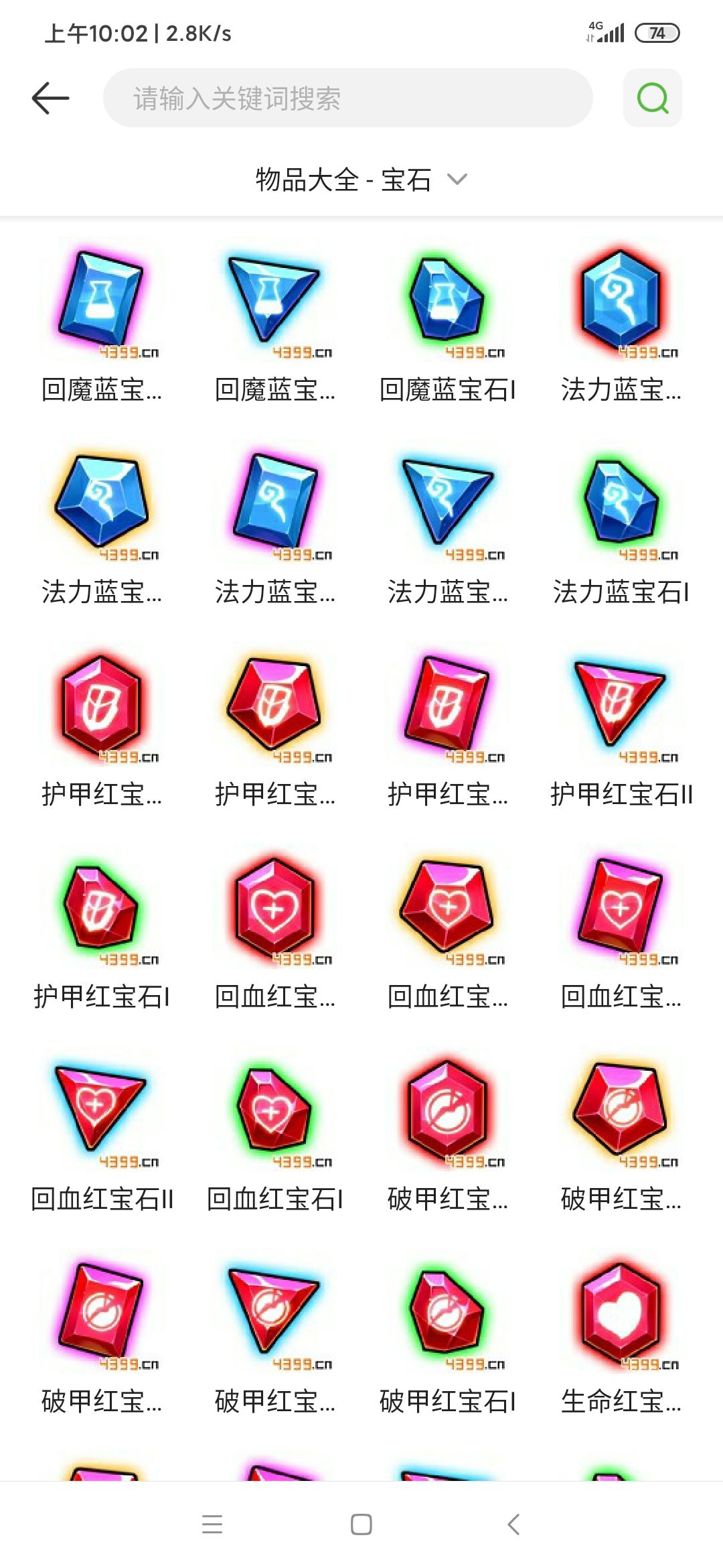 破甲宝石、破魔宝石、暴击宝石、闪避宝石、幸运宝石想、命中宝石
