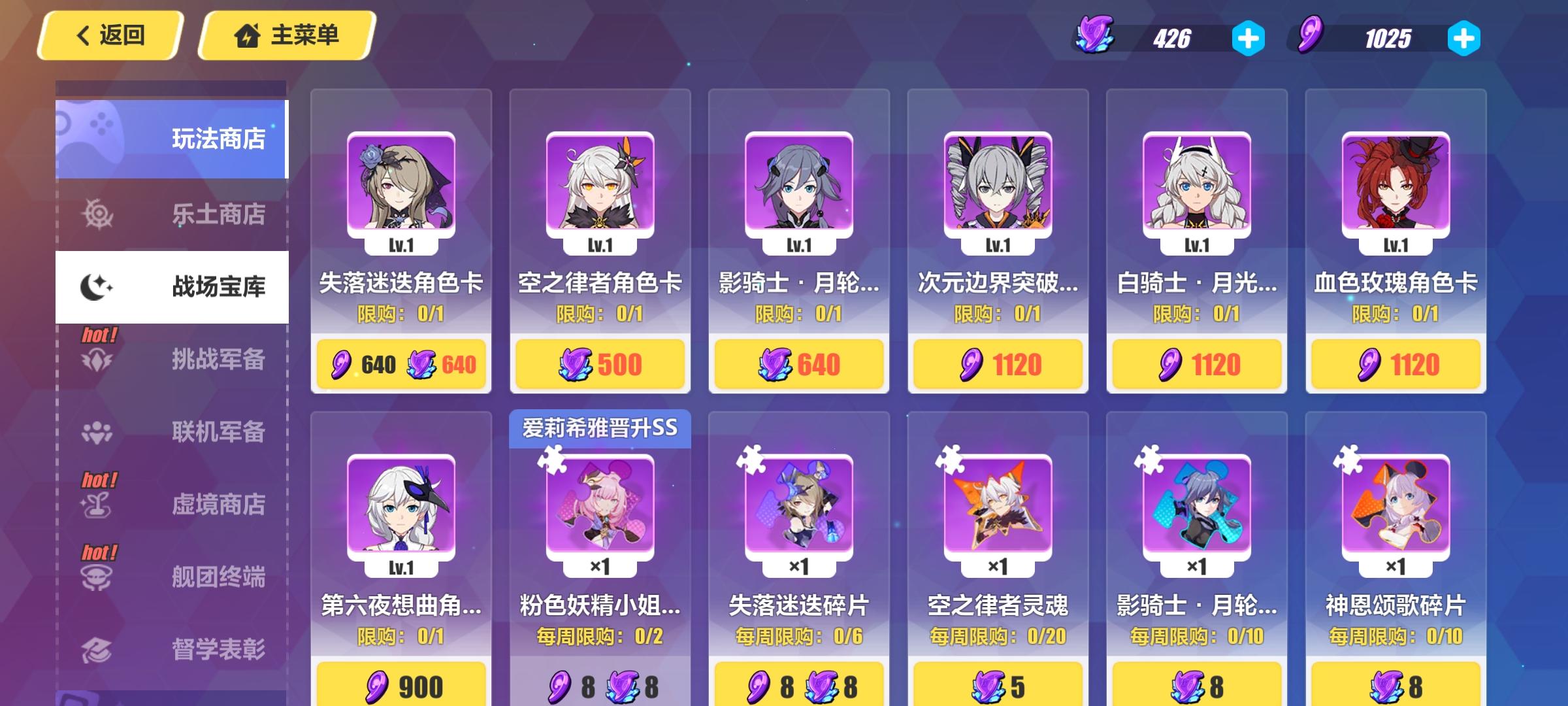 萌新阶段,目前74级,雷系除了2S毕业雷律,S无装皇女啥都没。迷迭还有必要搞吗?战场能换个S,凭证算上下期的球也够直接毕业。或者战场商店和凭证都换爱莉碎片?