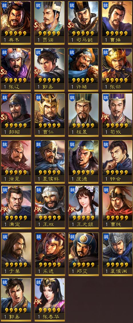 魏国武将给人一种,“厚重感”,可能这跟魏国有各种减伤盾、骑阵容有关。