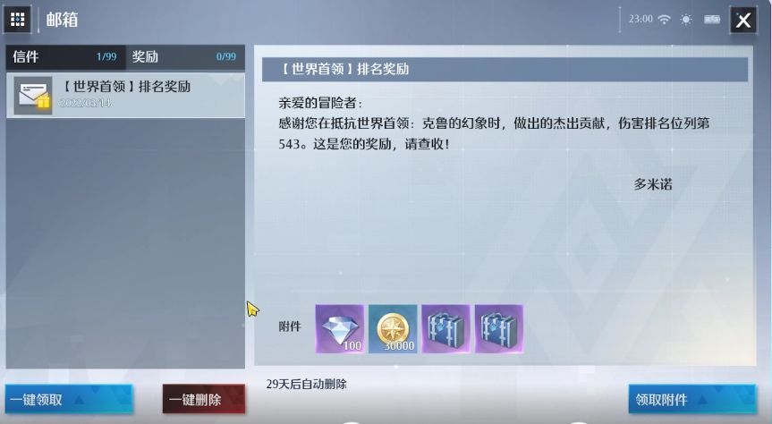 每天参加世界BOSS也可以获得钻石奖励哦,只要参与战斗,每次可以获得300钻,这也是一笔不错的收入呢。