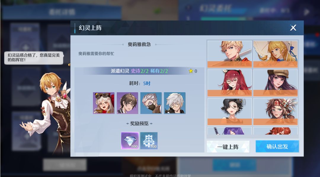 解锁幻灵委托功能后,可以委派幻灵接取委托任务,其中“神话”品质的委托任务可以获得100钻石的奖励,一天接一个神话任务毫无压力。