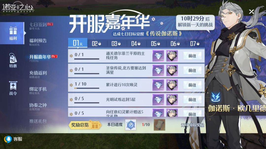 冒险家们来到诺亚星球的第一天,可以通过完成主线解锁“福利”功能,在福利列表中打开嘉年华达,达到对应条件就可以获得大量钻石奖励和幻灵碎片。一共7天,每天240,共计1680钻石。(开服第八天,还有神装狂欢节,奖励升级!)
