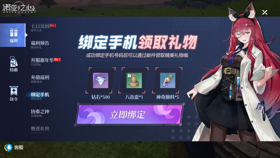 在“福利”中只需要绑定手机号并且同意推送,即可获得500+200钻的奖励哦~提升账号安全的同时也能领取钻石,冒险家们有没有很感动~