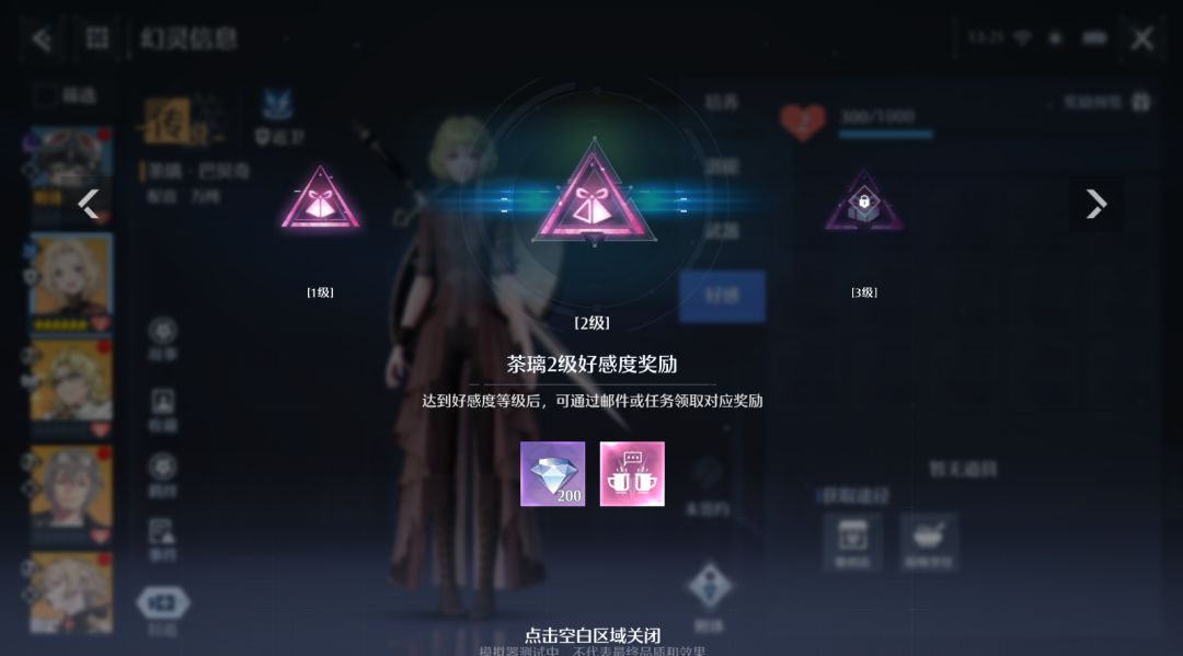 获得幻灵后可以赠送幻灵礼物,每当提升好感度等级时,幻灵也会赠送钻石给冒险家哦~礼尚往来一直都是非常美好的品德。阿泽建议冒险家前期可以优先将获得的幻灵好感度升到2级,这样可以获得更多的好感度奖励哦~