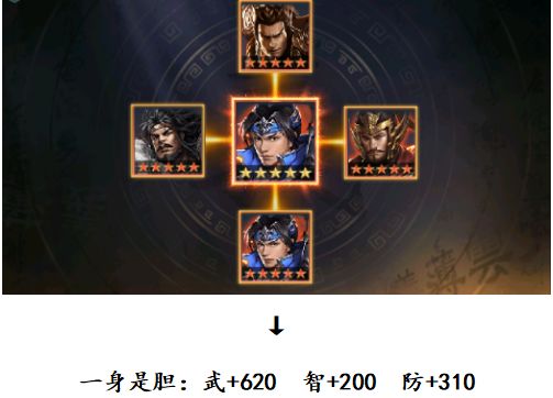 ▶见龙卸甲(被动):当我方武将武力值高于敌方武将武力值时,我方士兵方阵不受士兵伤害且反弹其原伤害的60%给予攻击方阵;