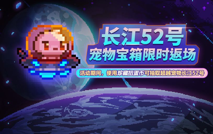 活动期间,限时开放长江52号宠物扭蛋,可使用珍藏扭蛋币开启扭蛋,有几率获得宠物——长江52号