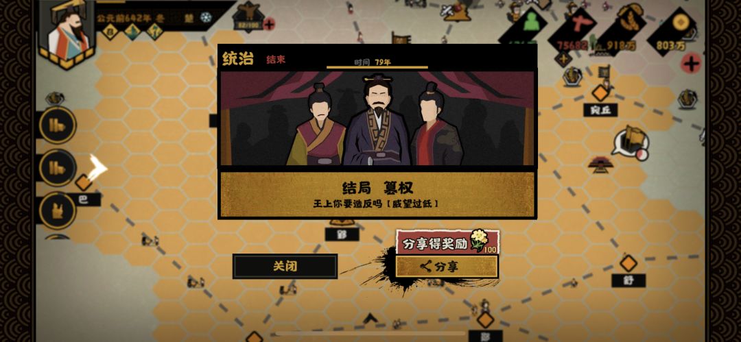 4、最后的描述记得不太全了,说是”多年之后朝野上下都这个氏族的人了,我就被架空了“。你这个不符合描述啊,多年之后,好歹等几年吧?瞬间就触发了?再给我一年我都能统一了。