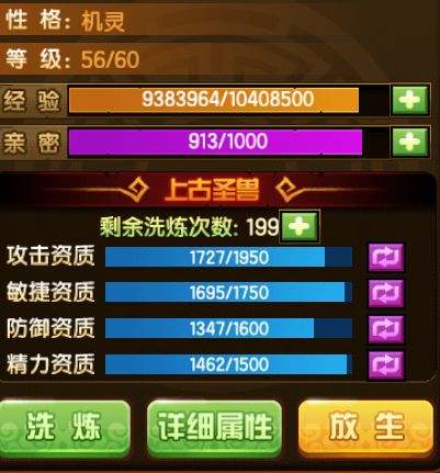 从这里可以看出来,不同的性格拥有不同的增幅,资质的好坏也决定一个宠物的强弱,那么,我们在洗练宠物中应该注意什么呢。