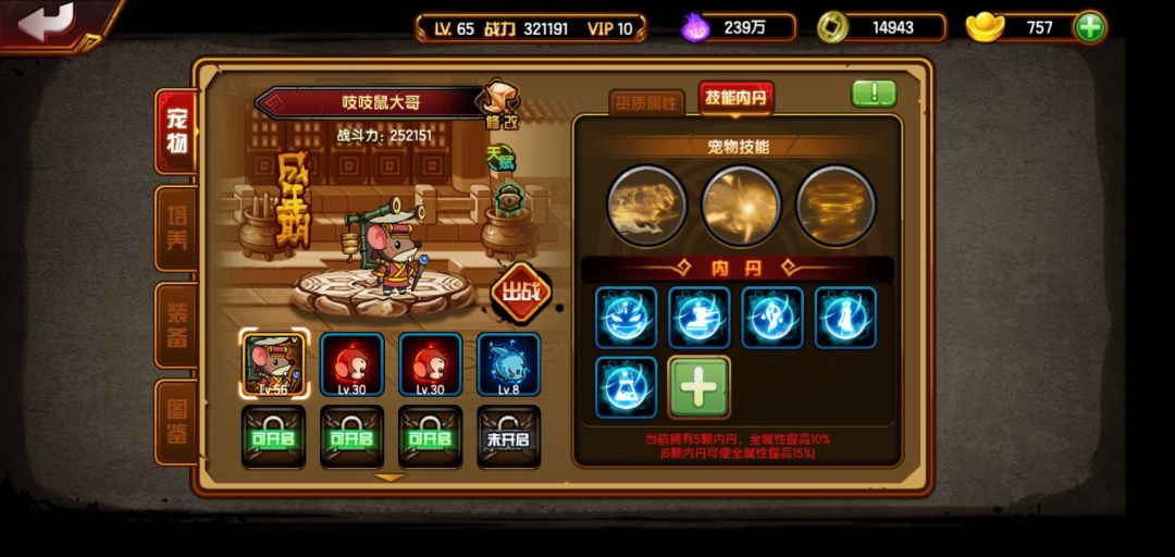 内丹需要上自己所需要的,资质也是,需要用天赋果和金币不断的洗练,一个好的宠物最重要的是攻击和敏捷,这两条近满就可以了,内丹则是需要从孽镜台获得。
