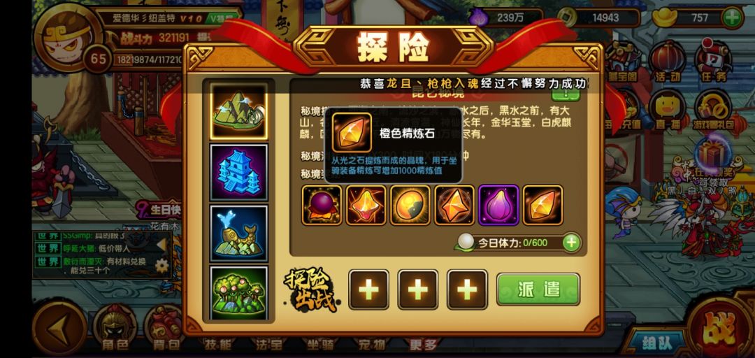 就是这个,在探险中,宠物可以获得进化石、食物和经验石,这可以为我们以后的紫宠甚至是橙宠做好物资基础。