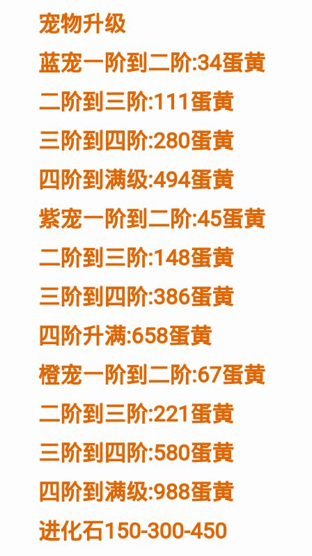 宠物是我们后期战斗十分需要的,养好一个宠物真的很重要。 最后附上宠物经验图。