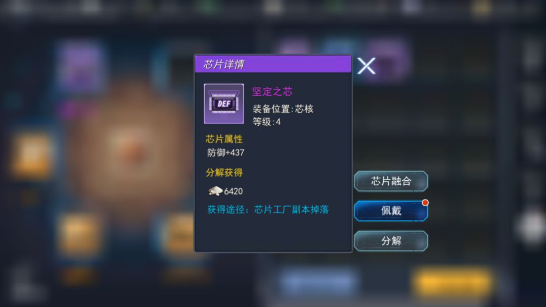 芯片用现实的说法,一般是集成电路通过一系列的加工工艺比如:设计、制造、封装、测试后得到的一小片东西。而游戏中我们的芯片相对简单,只是一种可以获得额外属性的佩戴系统。