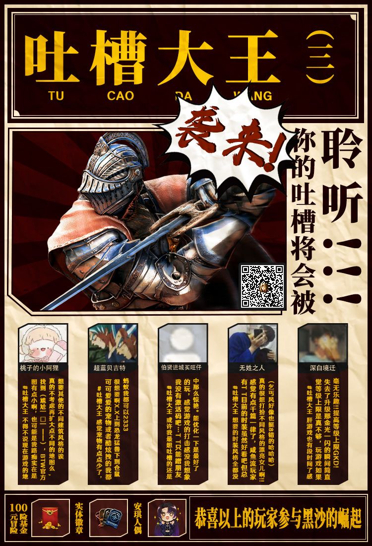 终于!吐槽大王bug征集活动第3期名单也出炉了!秉承着“不吐不快”的先进理念,各位吐槽大王们几乎把游戏翻了个底朝天!