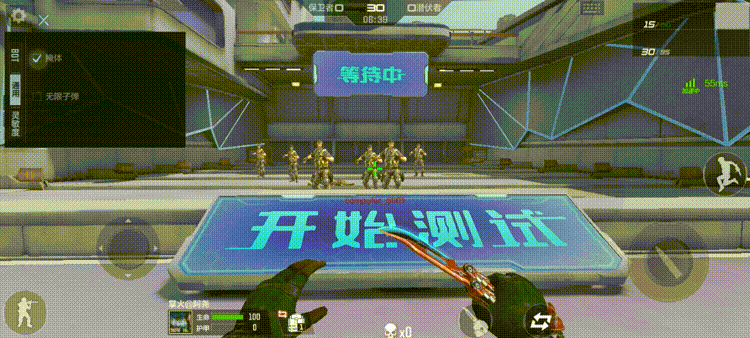 通用设置有“掩体”和“无限子弹”两个功能开关,无限子弹可以让枪械无需换弹,节省了训练时间。掩体打开时,训练场地里第一排BOT的位置会上升一排箱子掩体,不过该掩体的位置只到人物膝盖附近。