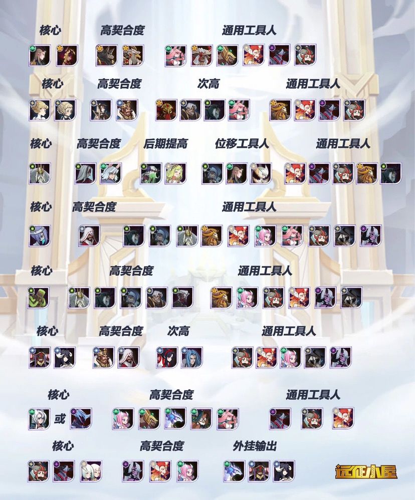 阵容搭配:也稍微有点老,但还能作为参考( 龙弓做核心相关的一切阵容都可以换成黑妹,凤凰做辅助的一切阵容都可以上sp凤凰)