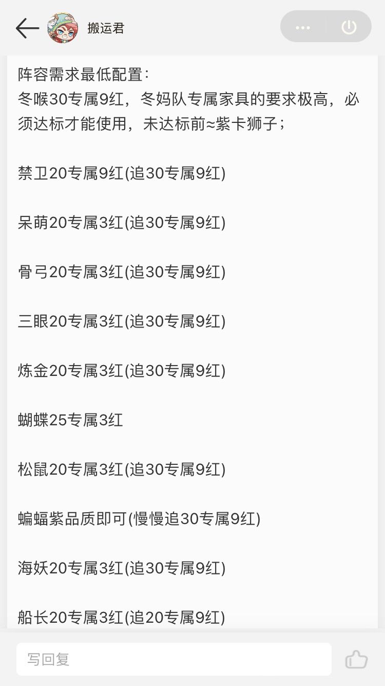 冬喉队各英雄需要的最低练度。