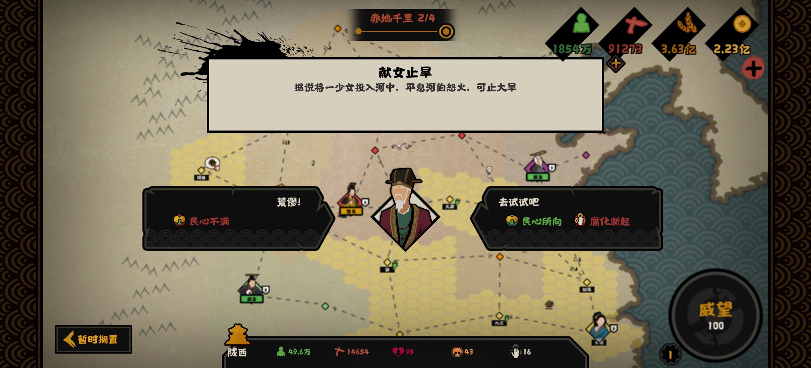 Ps:我猜测以为 成就【决堤】 也是在这个剧情里,祭拜河神之后发大暴雨然后决堤,但是弄了很多次,并没有。