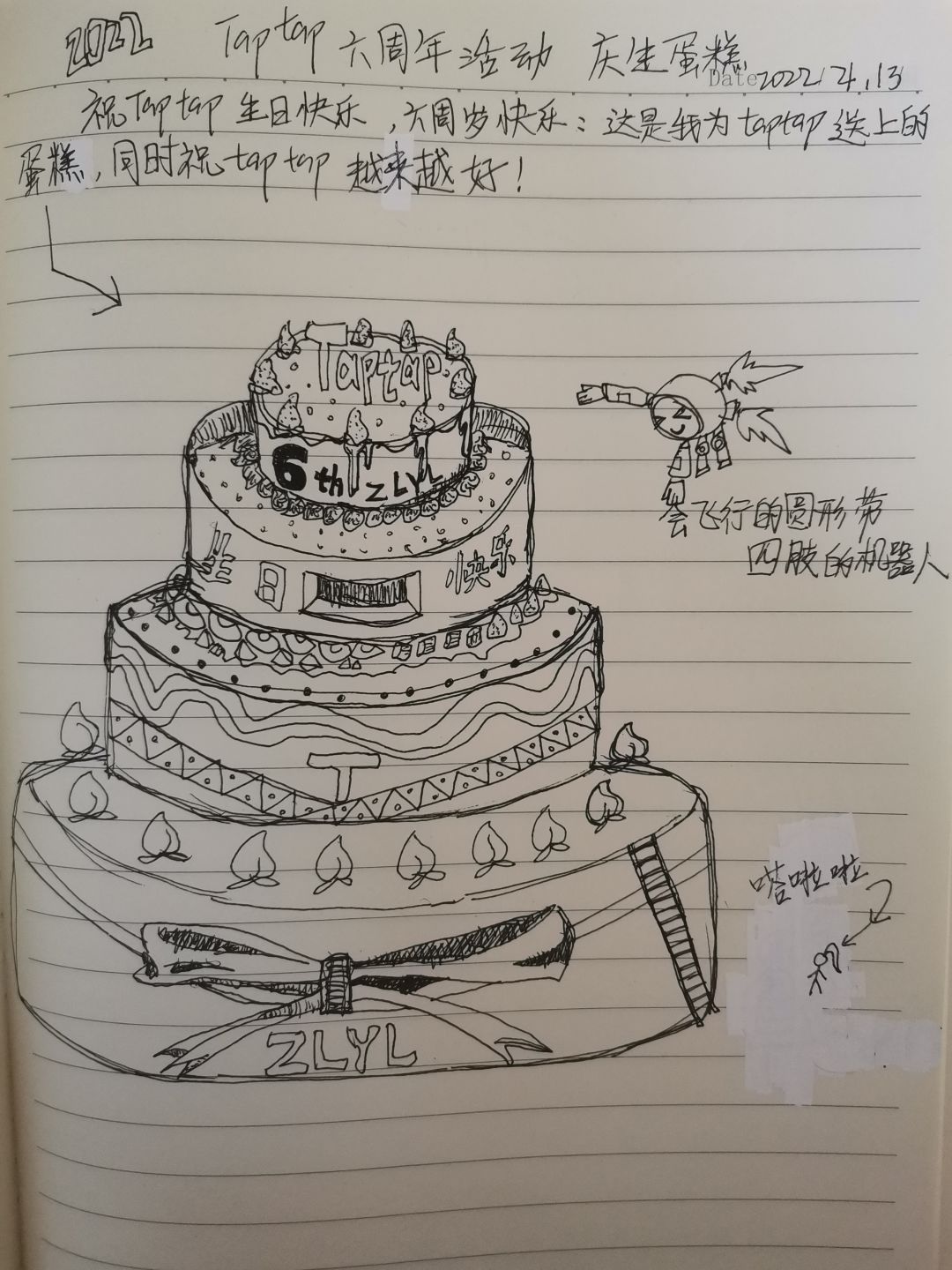 这是生日蛋糕,由于时间紧迫加上本人画的并不太好,于是直接瞎划拉一张。