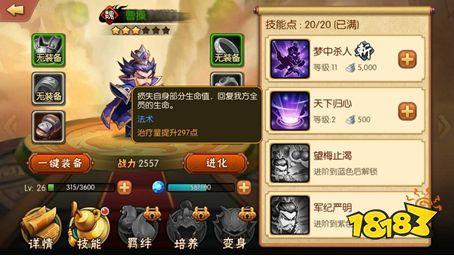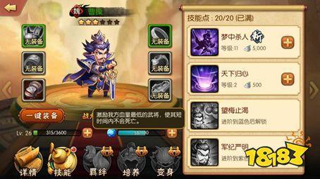 这足以见得,曹孟德在三国群雄中不可磨灭的地位与霸主宿命,而在我们《雷鸣三国》中,曹操是属于特殊型辅助武将,在布阵中位于队伍后排,虽然技能看上去没有其他武将那么简单粗暴,但是运用得当,可以出奇不意,打乱地方节奏。