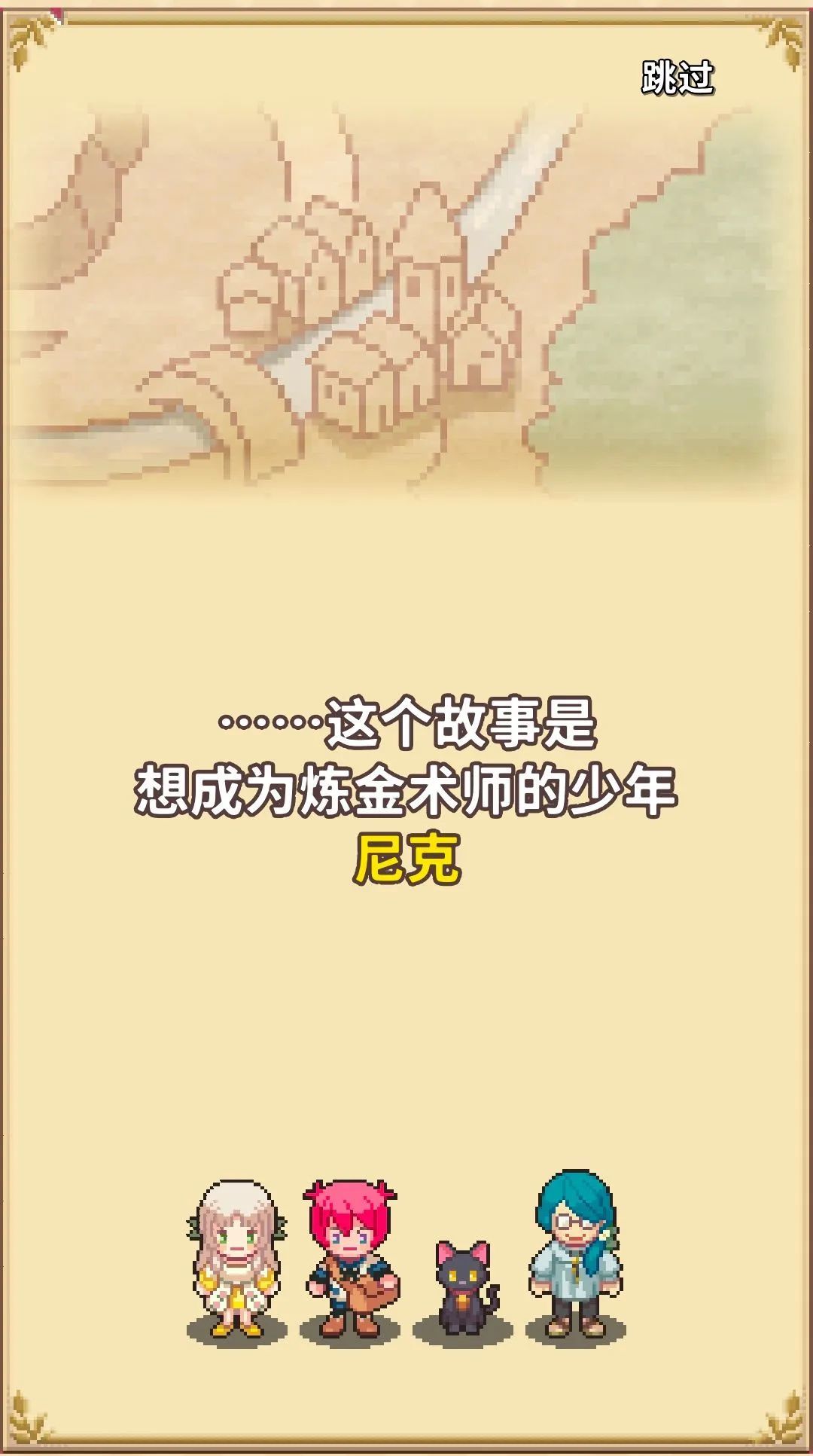 游戏的一开始会给我们介绍故事发生的背景,在一个遥远的王国一名叫尼克的少年的梦想是成为世界第一的炼金术师,向着这个梦想不断进发吧!